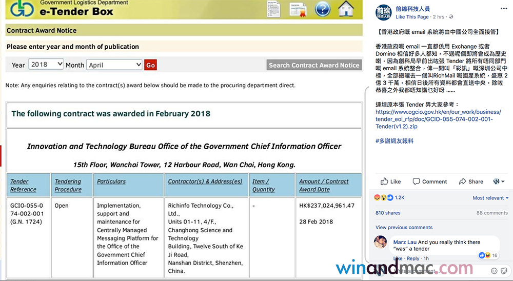 香港政府過往使用Exchange或Domino電郵系統,但創科局突然花盡2億3千萬,轉用一間大陸深圳的彩訊公司的RichMail國產系統。日後政府的電郵通訊會否直接交俾中央就能以知道,但創科局突然用了這麼多金錢去轉用這種大陸系統,究竟是為什麼?