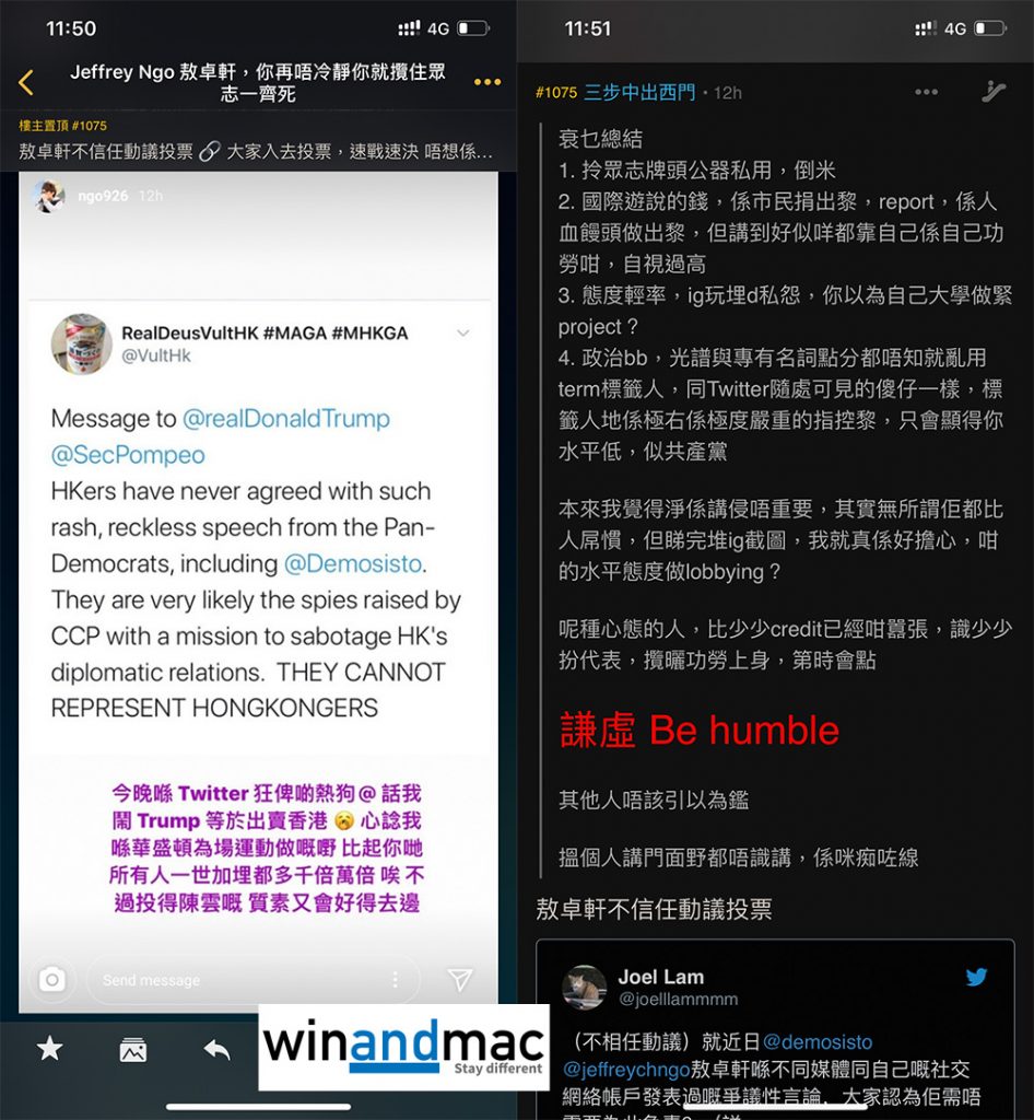 敖卓軒接受訪問後,被陳雲和連登仔批評後,曾在個人Instagram列出一系列截圖,似乎想指侵侵與中國關係好,不值得支持。唯連登仔也不放過敖卓軒,狂罵他拎眾志牌頭公器私用,又指敖卓軒態度輕率囂張,並要求敖卓軒要謙虛。有人更發表不信任動議,要求黃之鋒踢走敖卓軒。