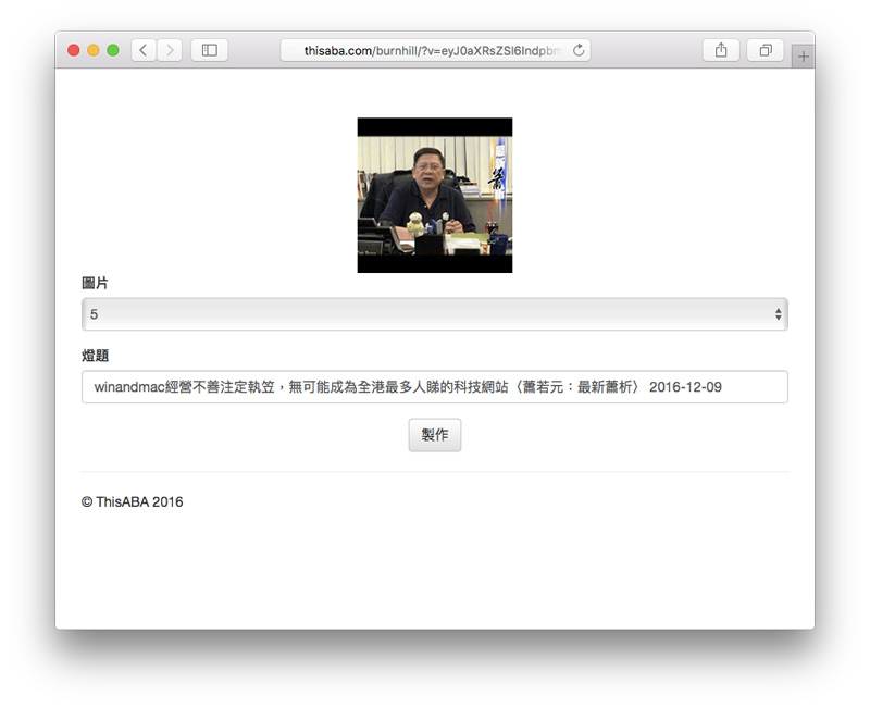 有興趣玩的,可以按此去有關連結,然後選擇最新蕭析的圖片,再輸入相關標題。按一下製作後,複製地址列的,就可以把其在社交網絡分享,結果就會像上圖顯示。想中六合彩、升官發財、事事順利的,不知道這種自燈會否有效呢?