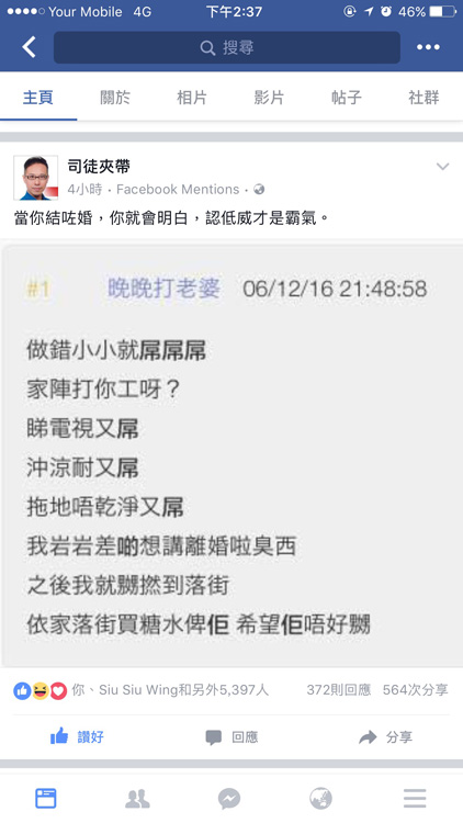 事件源自晚晚打老婆出了一篇文章,講老婆做錯少少事又罵等問題。司徒夾帶在Facebook以Screenshot轉載文章,沒有正確加入Credit,原作者原本已經不滿。其後司徒夾帶沒有理會,更把文字拍成影片,進一步引爆事件。