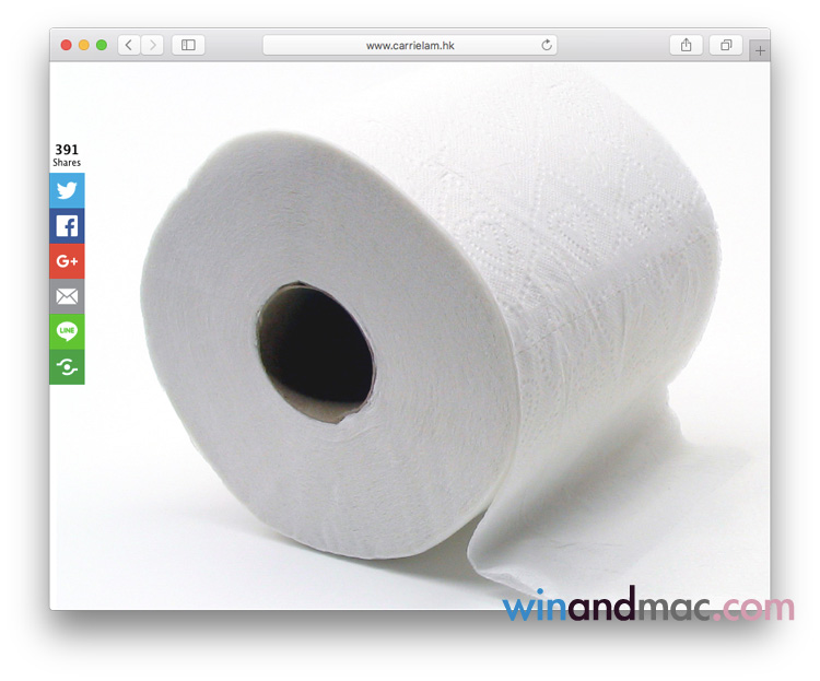 特首參選人之一林鄭月娥,近日終於成立網站,雖然有人批評其保安差,但總算有網站可以睇下。有趣的是,該網站竟然是得一卷廁紙,令不少人吃驚。