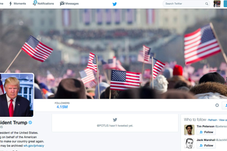 和早前報道不同,剛上任的美國總統Donald Trump特朗普正式替代奧巴馬,使用@POTUS Twitter戶口,至於奧巴馬的舊戶口、訊息和Follower會轉至@POTUS44。搞笑的是,@POTUS雖然變成全新戶口,但特朗普似乎偷懶或無時間影相,封面圖片竟用奧巴馬在2009年就職時的相片。