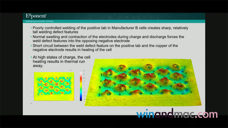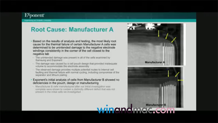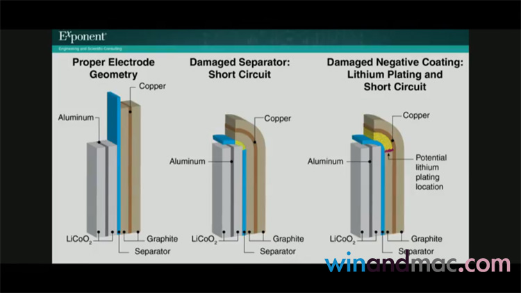 專家在記者會中亦表示,有些本來應該有用來分隔電池正負極的物料,也沒有做得很好,所以引致爆炸的情況發生。有些時候也像上圖一樣,負極太長而且在生產時亦有損壞,又或太長在手機的角位,引致Galaxy Note 7出現問題。