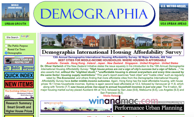 外國網站Demographia的設計雖然麻麻地,不過每一年有一個調查,都頗受認同:全球樓價最難負擔城市。最新一份剛新鮮出爐,或許大部份香港人都估到,第一名的又是香港了!今次已經是第七次,係咪好叻叻豬?