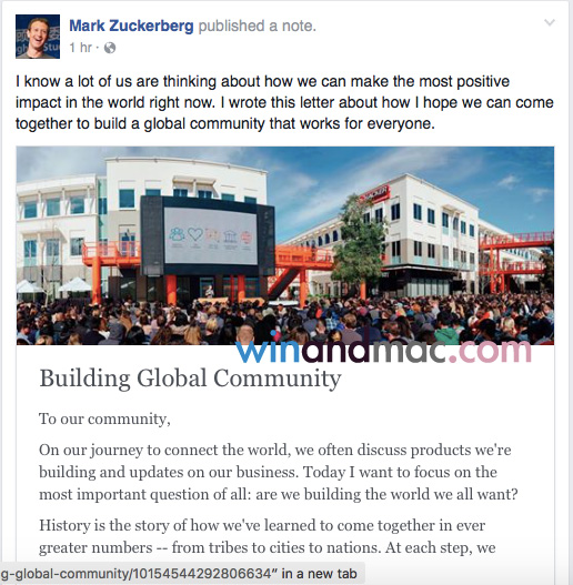 Facebook CEO Mark Zuckerberg剛在其Facebook發表多達6千字的長文,談到如何建立全球化的社區。文章一開始,就說大家是否建立一個大家都想要的地球。