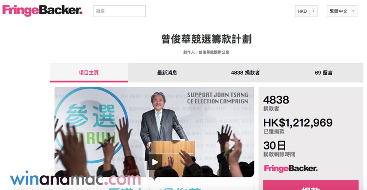 香港人無票投照捐錢  曾俊華眾籌競選超過一百萬