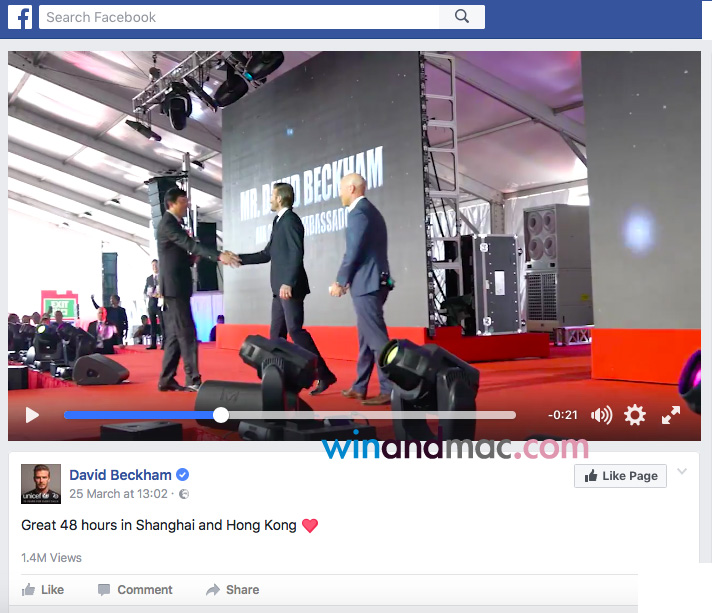David Beckham碧咸萬人迷來港,香港很多球迷都很瘋狂。不過,一個不小心,似乎又引起關公災難。事源碧咸在Facebook上發佈影片時,寫道Great 48 hours in China「48小時在中國」。