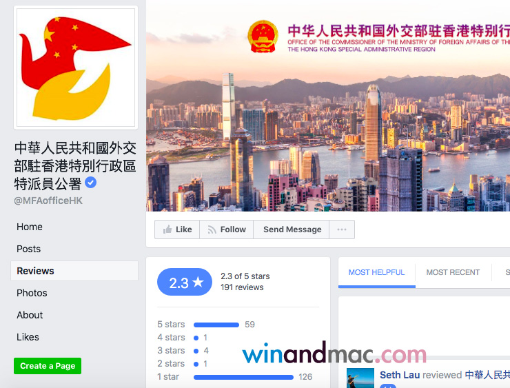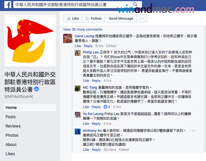 中國外交部駐香港特派員公署  Facebook藍剔加簡體狂吸劣評?