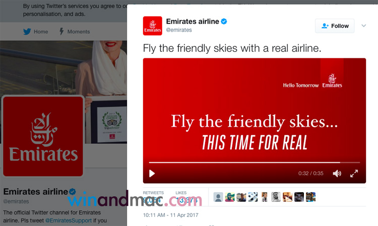 大家可能會覺得為什麼同行也不互相支持,是否有點不太好。其實在美國,這種直接批評對手的廣告常有,再者當年United CEO Oscar Munoz曾向Emirates開火,暗串Emirates不是航空公司。如今阿聯酋航空惡搞一下,把聯合航空的口號Fly the friendly skies(享受友善的旅程),後面再加多句This time for real(這次是真的),算是不錯的反擊吧。