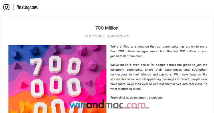 雖然Instagram近來不停抄襲對手而被受批評,但很多用家似乎不會理會。Instagram剛宣佈,其活躍用戶達7億,在四個月內增加的用戶數都達1億,破了過往記錄。