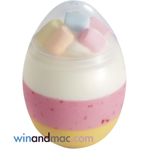 McCafe的彩蛋的底層清甜的芒果慕絲,配上酸酸甜甜紅桑子慕絲,然後再加上雪白幼滑的白朱古力慕絲,有三層不同感受。大家只要購買指定飲品一杯,就可以HK$15換購復活彩蛋一隻。留意有關優惠不適用於香港國際機場入境大堂與出境大堂之McCafé櫃位。有興趣的,還可選購復活彩蛋禮盒,內裏有四件Easter Rainbow Egg復活彩蛋。