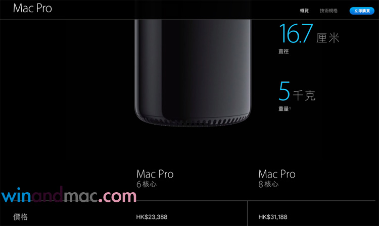 其外觀和設計其實仍然一樣,但硬件規格則作出全面更新。綜合外國傳媒報道指,6核心的入門版本比以前便宜,而且亦使用雙AMD D500的圖像處理器,比過往D300更好。兩款Mac Pro都具備256GB SSD起跳,用家有需要的話當然可以自行設置。至於接駁口方面亦很多,包括4個USB3、6個Thunderbolt 2、以及HDMI 1.4 Ultra HD支援。其售價由HK$23,388起跳,即日起已可購買。