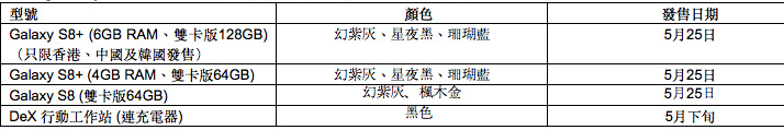 Samsung S8/S8+使用貼邊螢幕設計,讓大家有更細的機身,但仍然睇得更多。它亦有IP68 認證,支援抗水防塵,當然實際情況要參考官方資料。日前香港記者會中,試玩的手機並未是正式香港發售版本,但能夠搶先玩到手機也不錯。而其售價目前仍未清楚,至於發售時間和顏色可參考以下內容: