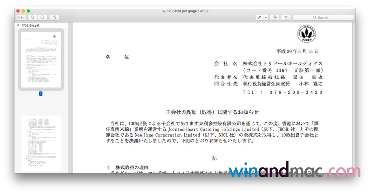TORIDOLL Holdings將會全面收購同心飲食所營運譚仔雲南米線,官方聲明指,譚仔在香港成績不錯,受年輕人歡迎。他們續指丸龜製麵及譚仔雲南米線有協同效應,對於發展香港和大陸市場都有幫助。有關合約將於今天16日簽好。