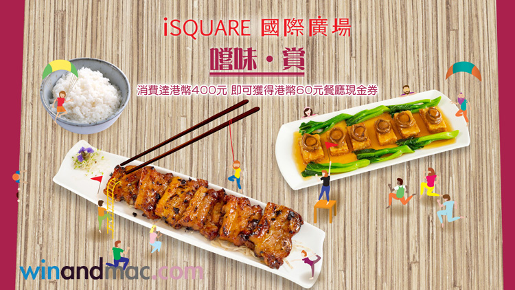 星期六日可能大家都會想出外消費,尖沙咀iSQUARE國際廣場於即日起推出「嚐味•賞」的換領活動,於商場最多兩間不同零售商戶,以電子貨幣(包括信用卡、易辦事、八達通)同日累積消費達HK$400元或以上,即有機會獲得「金殿海景宴會廳」HK$60元現金券或「江順河鮮」HK$60元現金券。