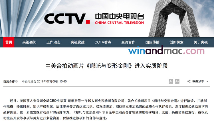央視稱,他們與美國孩之寶代表已就版權、法律、製作規格、播出時間等達成共識,又指今次《哪吒與變形金剛》是中美動畫的重要合作里程碑。