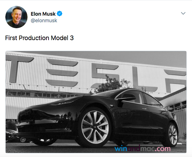 Elon Musk於當地時間星期六,放上一張相片,大家看看正式投產的Model 3是什麼樣子,即時引起不少人瘋傳。