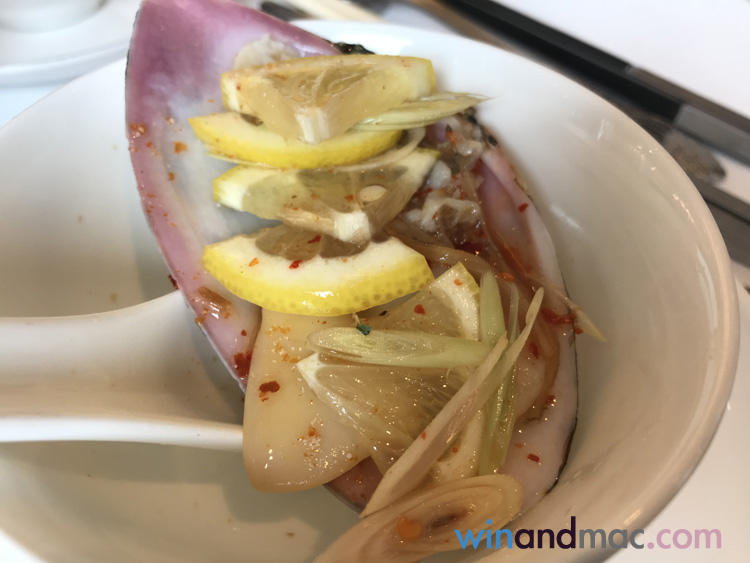 這款檸檬啦啦汁蒸刀貝(HK$128/例)可謂相當特別,上面放了不少提味的檸檬,加上其他香料,令刀貝的鮮味更出,讓大家對刀貝的鮮味有另一種新的睇法。