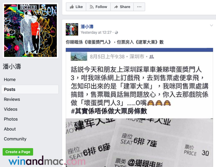 據稱有關網友在網上訂票睇《壞蛋獎門人》,到深圳的電影院印出來的時候卻是建軍大業。他原以為是搞錯,但電影職員稱不用擔心,入去睇的仍然是《壞蛋獎門人》。至於票房總數,會否入《建軍大業》?這是一個疑問。至於網友的留言亦很有趣,有人稱「本質咪一樣,黃皮膚黑頭髮,專幫當代最壞嘅人做嘢….」