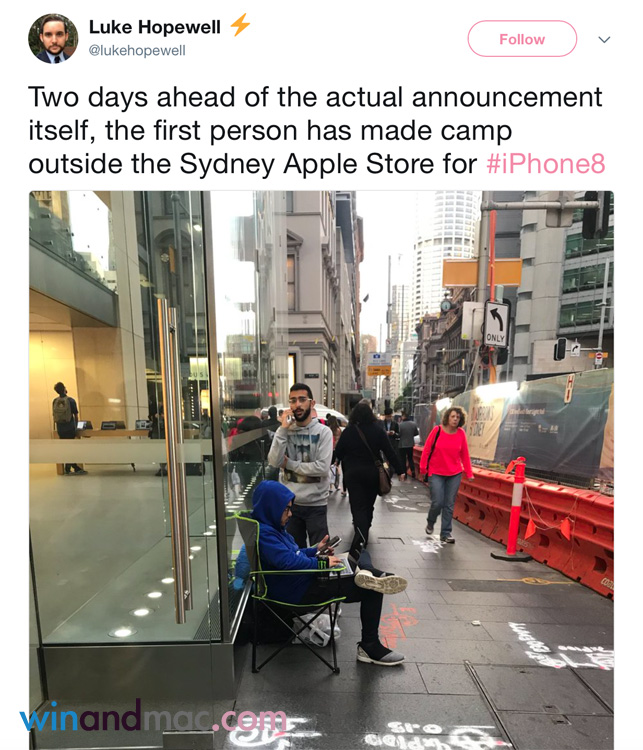 距離蘋果發佈iPhone X及iPhone 8還有多個小時,但每年總有蘋果用家真的等唔切。CNBC及記者Luke Hopewell確認,在澳洲悉尼蘋果商店外面,開始有人排隊。