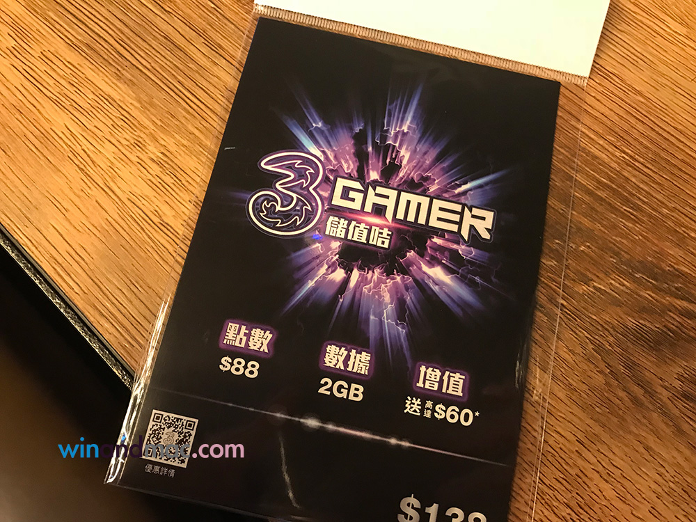 3香港今天主要宣佈推出3Gamer平台,用家可在平台中購買遊戲點數。3香港今天還宣佈推出全新的3Gamer儲值卡,售價為HK$138,當中提供2GB數據用量之餘,還有HK$88的金額可全用作購買點數和數據組合。若果大家為儲存卡增值HK$100,還可獲100MB免費數據用量。真的要再買數據組合的話,更可獲高達HK$60回贈。