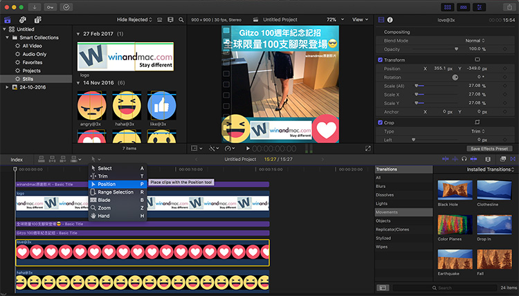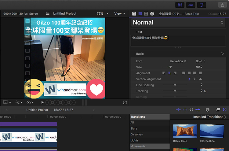 而Final Cut Pro X亦與macOS的兼用性較好,例如小編經常要在字幕中加入一些表情符號,Adobe Premiere Pro CC就沒有Apple Color Emoji字型選擇,因而會出現亂碼。當然大家可以在Photoshop CC打完表情符號,再匯出放入Premiere Pro,但時間又會花多不少。Final Cut Pro X對此支援相當不錯,打完後連字型也不用改,就可以正確地顯示。
