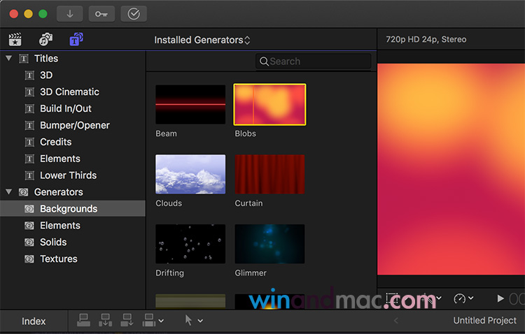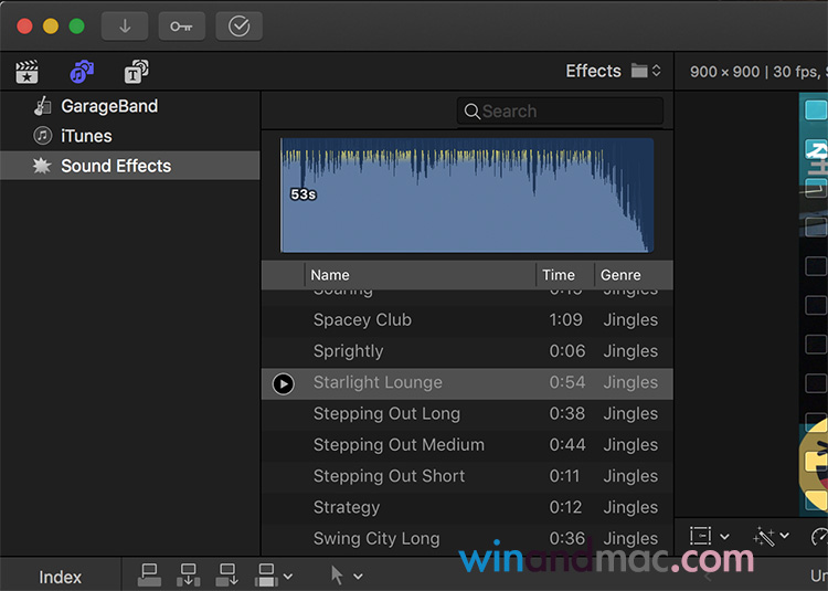 正如剛才所述,Final Cut Pro X的好處是易用,而且winandmac小編覺得最吸引的,是本身提供大量的背景圖片、背景音樂、音樂特效的範本和素材選擇。Adobe Premiere Pro CC沒有太多預設的背景和音樂選擇,大部份都要額外付錢購買。對於有時只是想快速剪接一下,例如剪輯旅遊影片時想加入一些簡單音樂,就節省了額外上網搵CC音樂的麻煩。