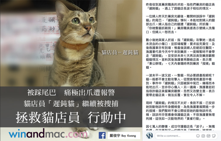 對上次貓店員被大陸婦人報警的事件,至今仍未完滿解決。悲慘的是,一波未平一波又起。立法會議員鄺俊宇在Facebook發表文章指,又再有貓店員被人投訴,恐又再有貓和相關店員要坐監或被法律制裁。