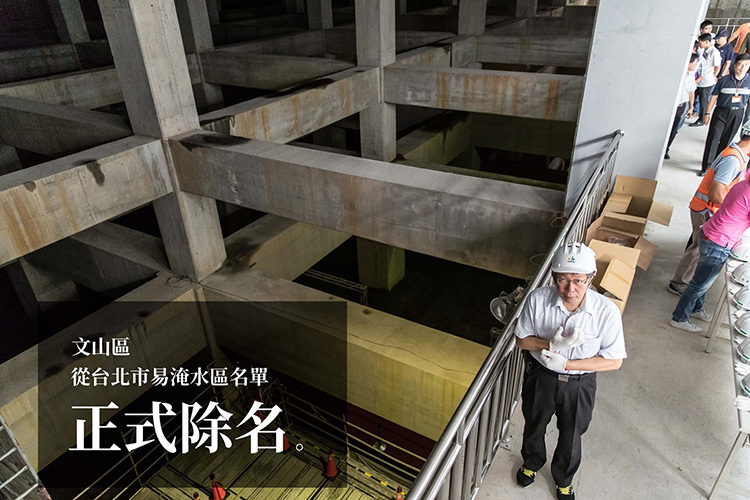 柯文哲表示,文山區興隆路二、三段、福興路一帶每逢下大雨,都會出現水浸問題。他們在市府工務局一起努力下,把原本預計要花23億的計劃,減低至用了8億就解決問題。他們用了軍方無償撥用的辛亥路憲兵營區、文山運動中心北側的空地,興建兩座大型地下滯洪池,配合「分洪加滯洪」的方法,令文山區的防洪能力提升。