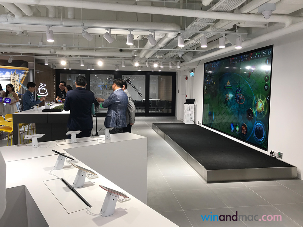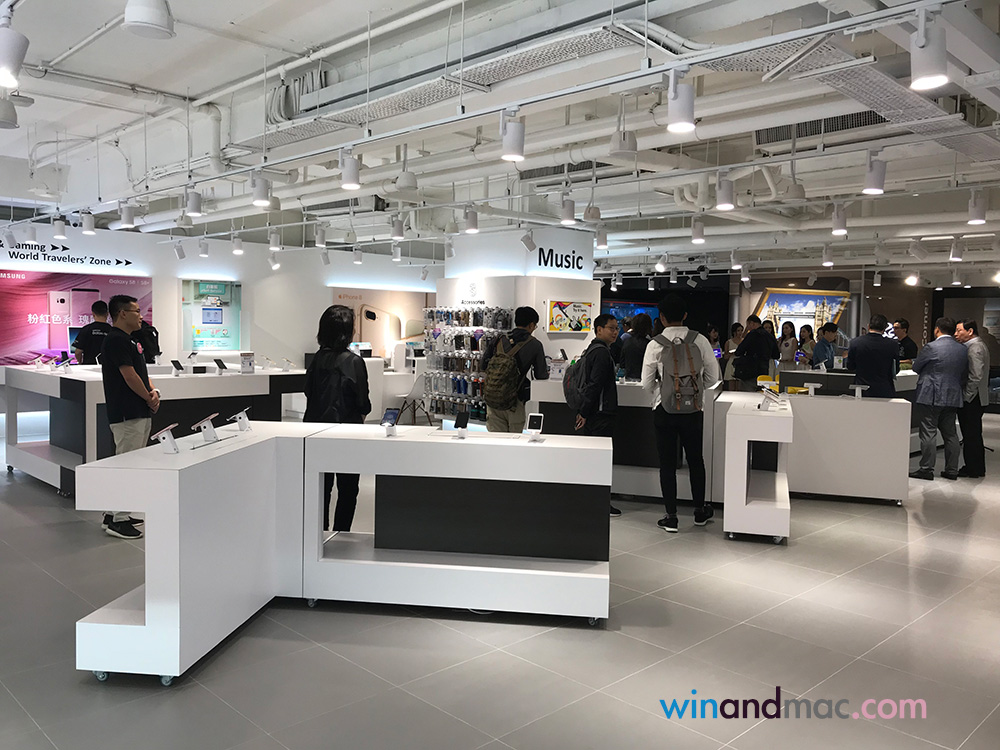 落樓梯後可以看到超大的空間,當中分為不同的專區,大家可以玩到蘋果一系列的產品之餘,亦由其他品牌的手機可以供選擇和試玩。