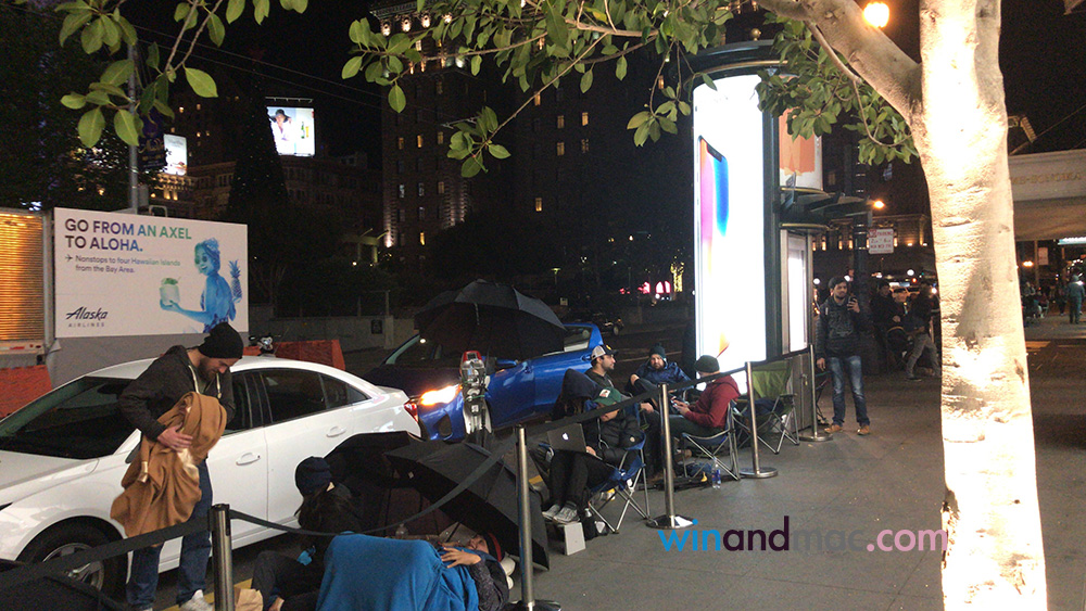 我們駐美國記者在Apple Store Union Square的三藩市分店,本身明明是在市區,但似乎排隊的情況不算太熱烈。至於現場情況亦良好,大家也很有秩序地聊天、睡覺又或吃東西等,同時亦可看到有店員,正在為當地時間4號的iPhone X開賣的