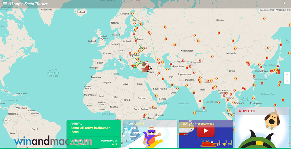 例如大家可按Play部份,當中有Elf Glider、Reindeer Runner、Gift Matcher等,若果聖誕太悶仍然可以用來消磨不少時間。而在主頁撥下去的時候,除了可以看到聖誕老人何時才到香港之餘,還可以按左面同時欣賞聖誕老人目前地方的景色。