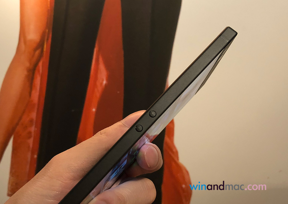 機身旁邊都有音量按鈕,從中亦可看到手機比目前常見的稍為厚一點,或許是因為內置4,000mAh鋰離子電池,以及120Hz廣色域的5.72吋IGZO LCD 螢幕,解像度為1440×2560。