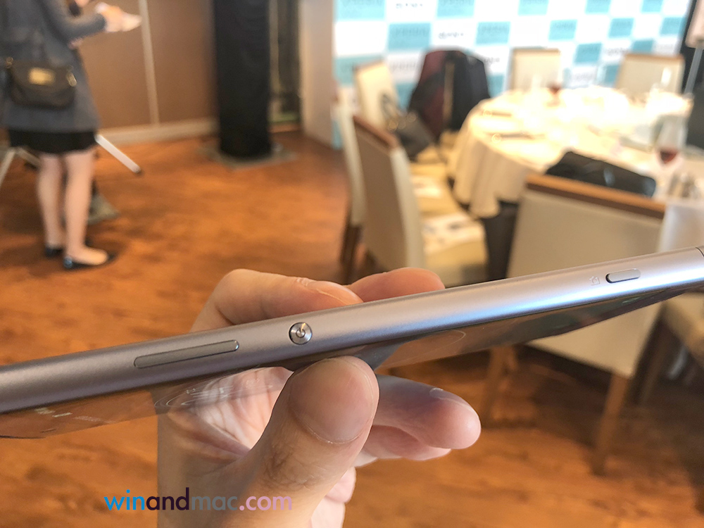 機旁從左之右分別是音量按鈕、開關按鈕以及拍攝快捷鍵。
