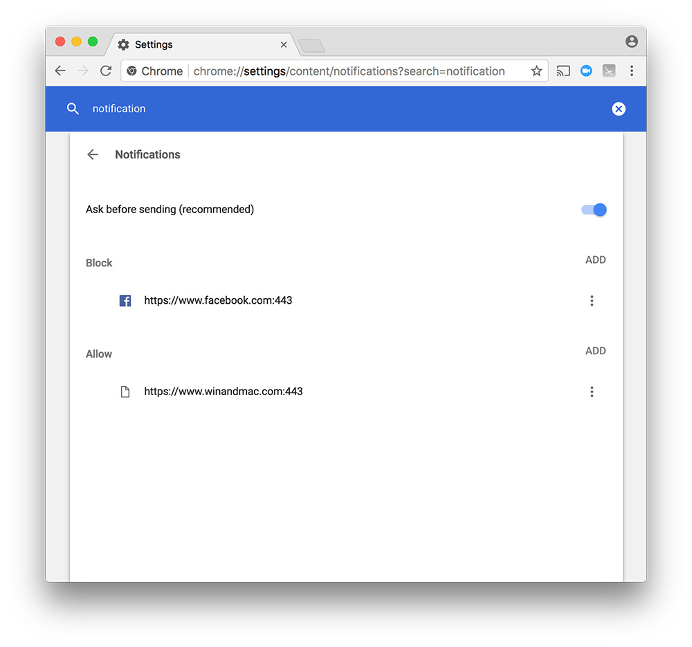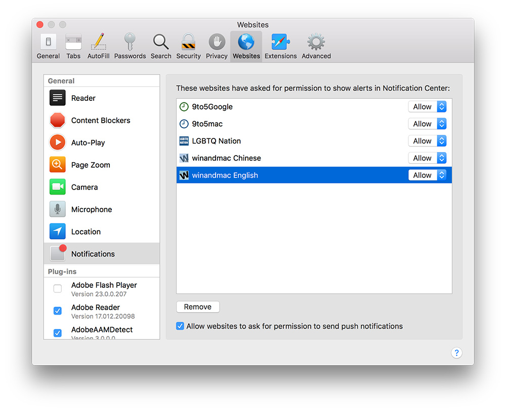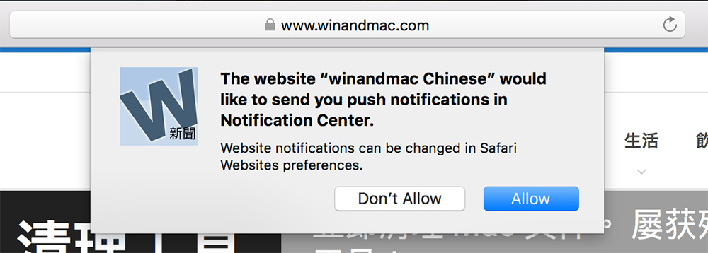 要避免此問題,大家其實可以活用通知功能。例如用瀏覽器登入winandmac.com時,會看到以下通知,僅記此時按Allow允許即可。