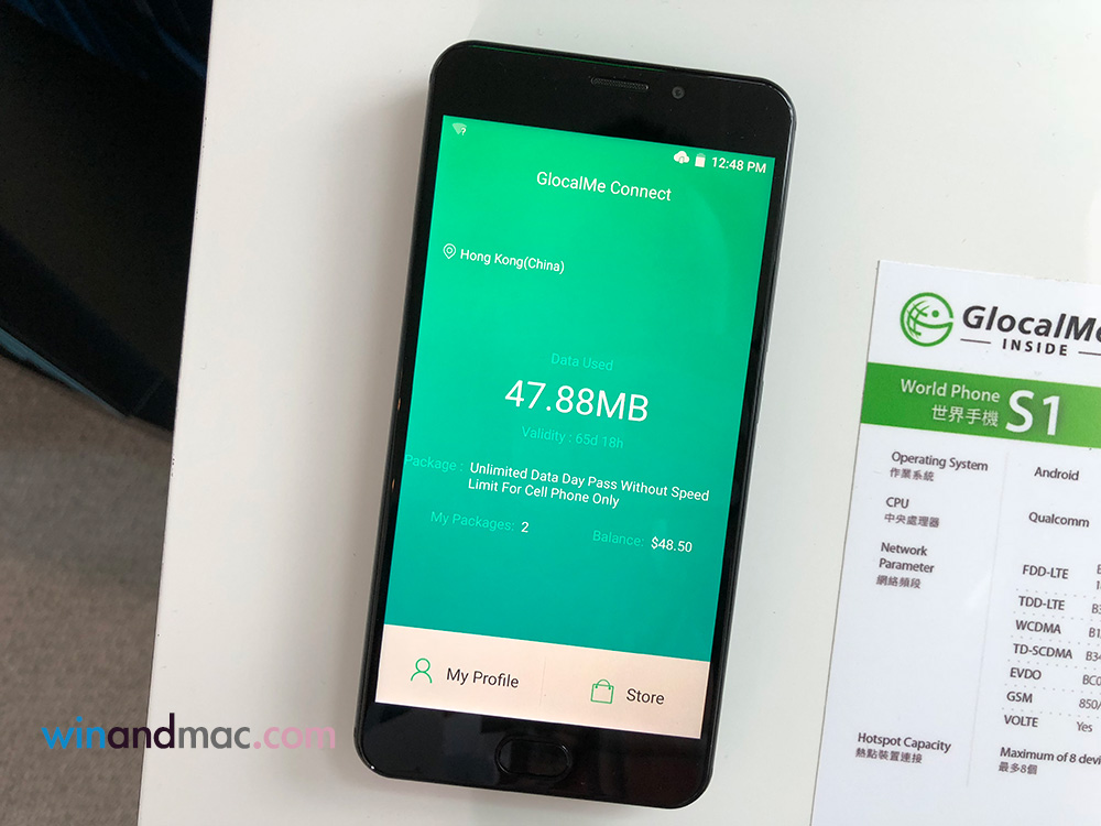 這款是世界手機S1,雖然規格和外型上不算太吸引,但似乎GlocalMe是讓用家當作是後備手機或旅遊用手機。其操作系統為Android,可當作是熱點裝置,分享給其他裝置使用,最多可接駁8部裝置。