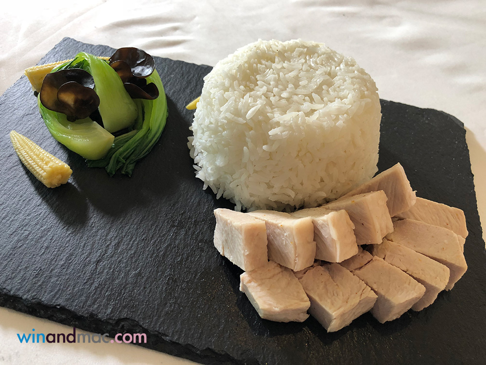 第一款要介紹的是招積雞胸飯,本身已經去皮,卡路里含量僅為約500千卡。當中的雞胸肉脂肪低,又有蛋白質,切合運動後的需要。