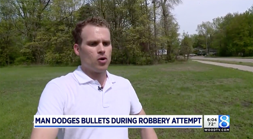 Jerad當時一口拒絕,並向賊人表示,他工作十分辛苦並努力儲錢,才買到這款LV袋,對他的意義重大。賊人當然不高興,於是在他身旁開了兩槍,Jerad後來嘗試逃走時,賊人再對他連開兩槍,幸好第四發有問題。