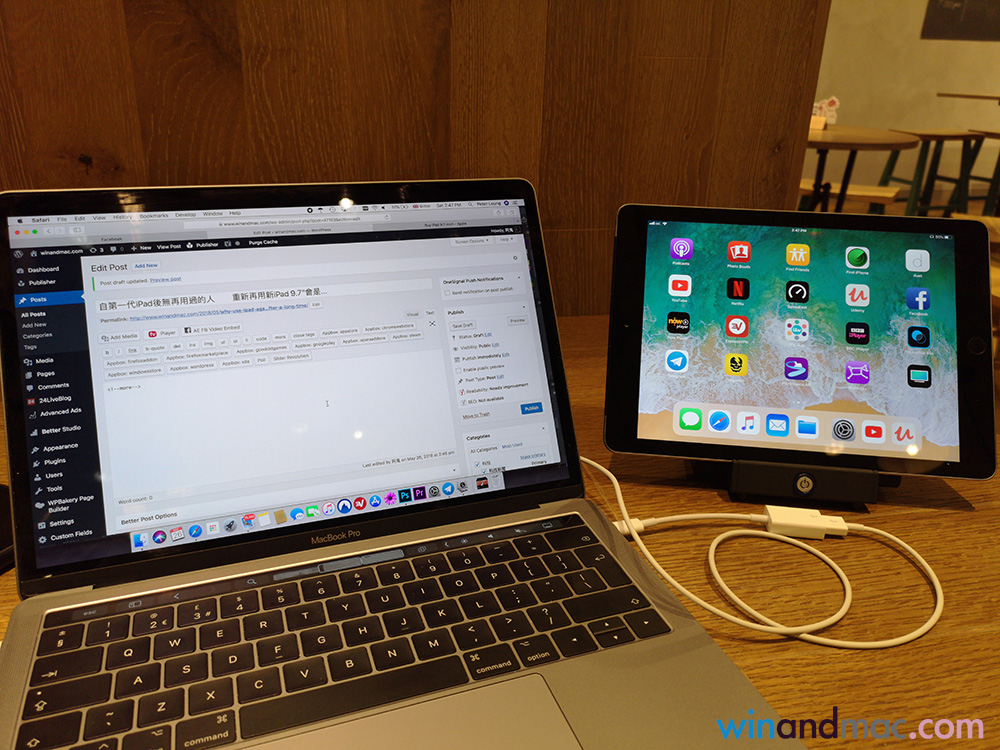 多得iPad 9.7″都有A10晶片,以及第三方apps的進化,新iPad可以當作電腦的額外螢幕。把iPad當作額外螢幕不算是新鮮事,但過往iPad的晶片不夠快、軟件又不夠好。不過,今次試用這部新機再加Duet Display app,實際使用效果可謂相當不錯,幾乎完全沒有延遲。小編試過就算用來播高清影片,以及打字的時候,都完全沒有延遲,就像一個真的外置螢幕一樣。若果以不到三千元價錢,可以讓MacBook多一個外置螢幕,同時在戶外使用時可玩不同的apps,算是頗不錯了。