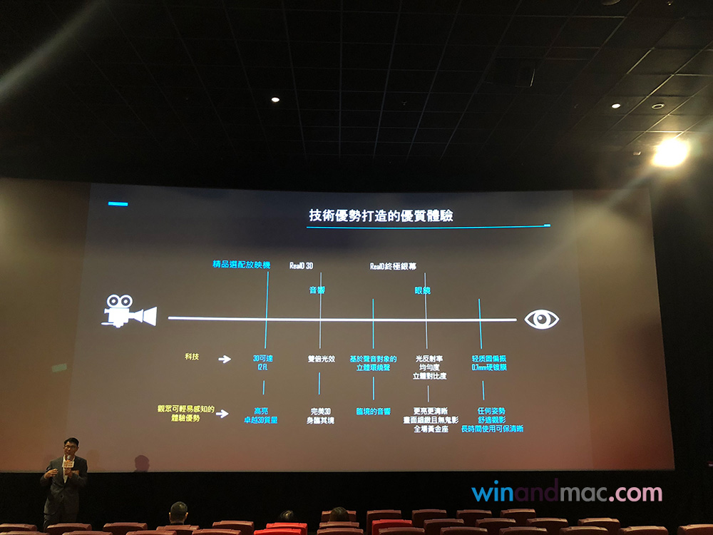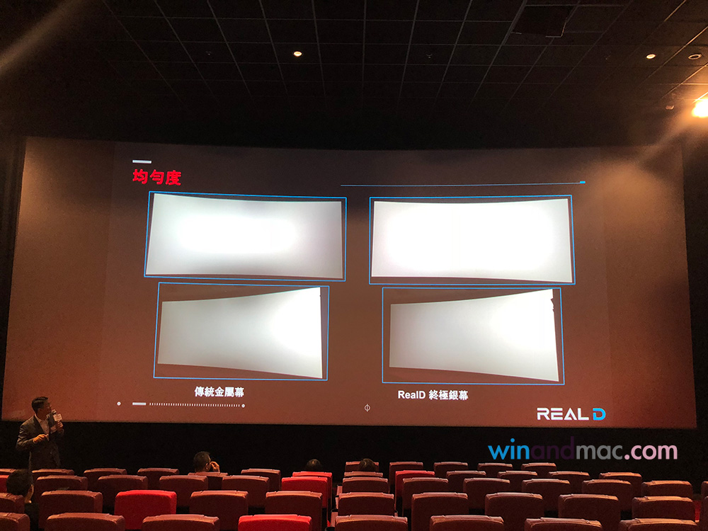 Movie Town的RealD影院銀幕採用不同的設計,光暗均勻度較好,有雙倍光度,顏色仍然豐富,可以做到無鬼影。小編在現場試睇影片時,的確沒有鬼影,這對於因為驚暈而不想睇3D電影的觀眾來説,是十分重要。