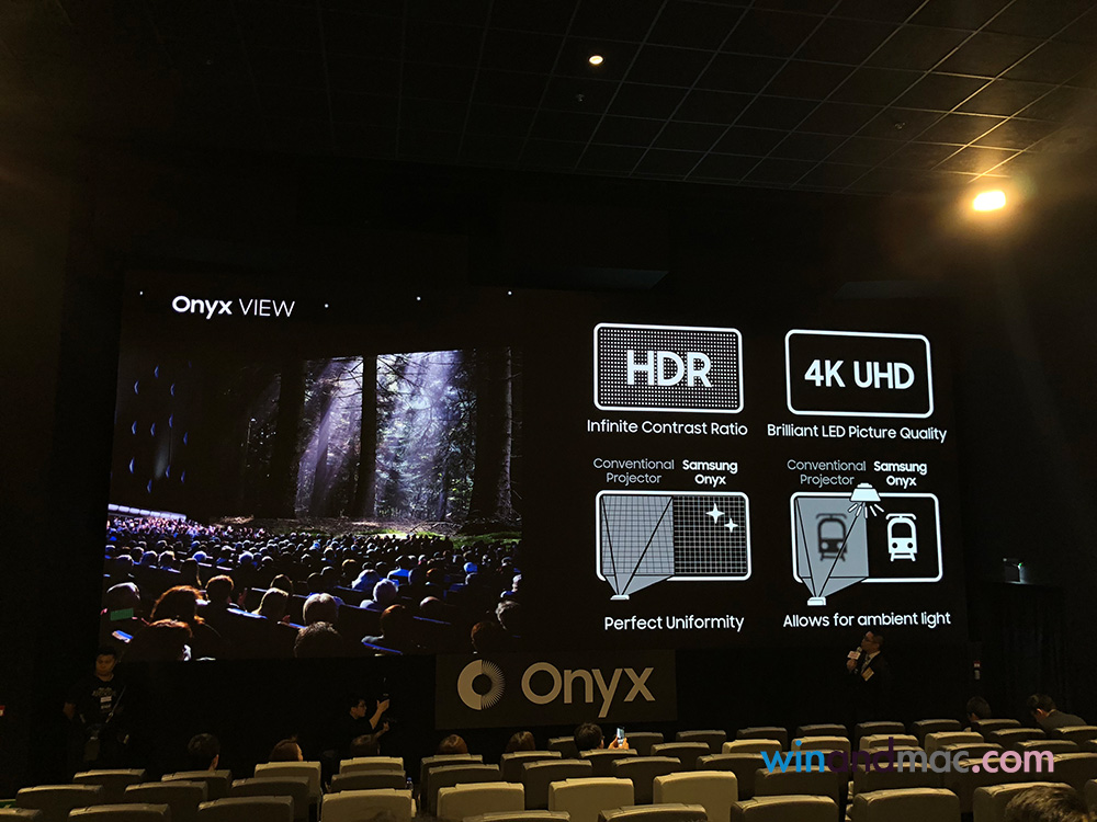 大部份的戲院都是以投射方式為主,Movie Town就有首間Samsung Onyx Cinema LED。好處由於本身是勁大的LED螢幕,不受其他光源影響,就算是有燈也可以睇得清晰。此外,其顯示黑色的時候更有層次,對比度也較好,現場實試的感覺也是這樣,明顯看到暗的位置顯示較好,可是螢幕感覺明顯較其他影院細一點。若果怕螢幕太細,買戲票時可能要稍為揀前一點的位置。