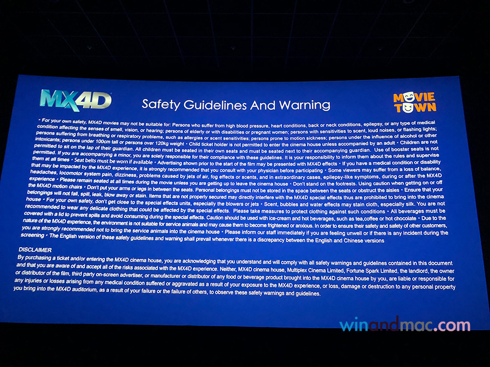 大家可以在Movie Town正門的左方,去到第七間的MX4D影院。若果下雨的話,也可以走回去商場按指示,找到4D影院。