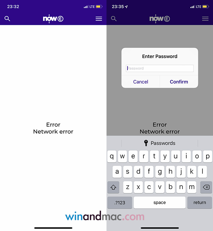 我們由十一點半開始嘗試使用now E apps,結果嘗試十分鐘左右仍然無法正常運作,後來成功開到app後,僅看到白色畫面。第二次再試,則看到Network Error。