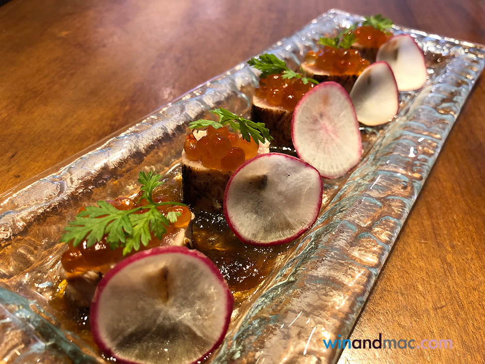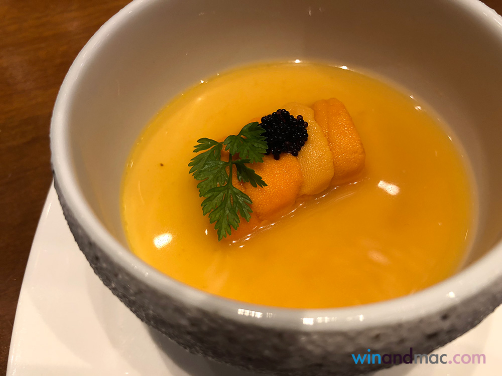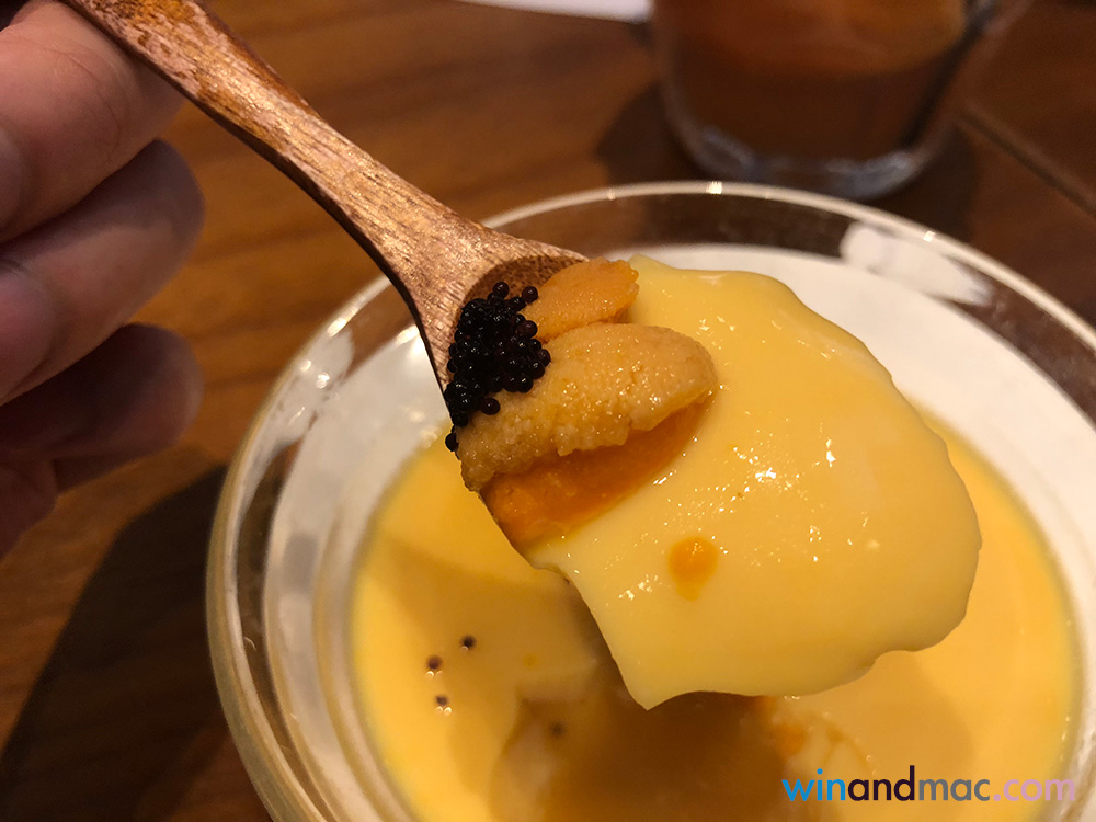 要知道一間餐廳的海鮮是否新鮮,最好的方法就是一試其海膽。GOGYO五行有這款很有創意的冷製海膽布丁(HK$98),面層的海膽混合布丁後的鮮味爆發,文字難以形容,再加上當中的黑飛魚籽,進一步增強海鮮濃厚的鮮味。加上本身是冷製,很適合炎熱夏天的時候享用。