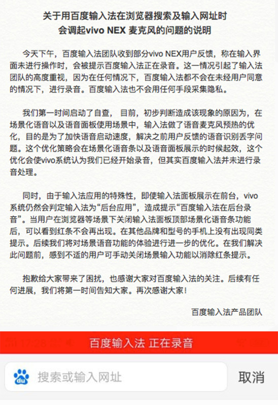 有趣的是,大陸品牌Vivo和百度都發出聲明,堅持這是個誤會,百度更公佈了方法如何去暫時解決問題。百度輸入強調,他們不會用任何方法去收集用戶私隱。當然,信不信由大家決定。