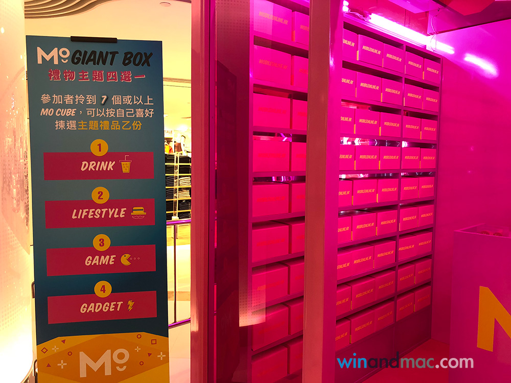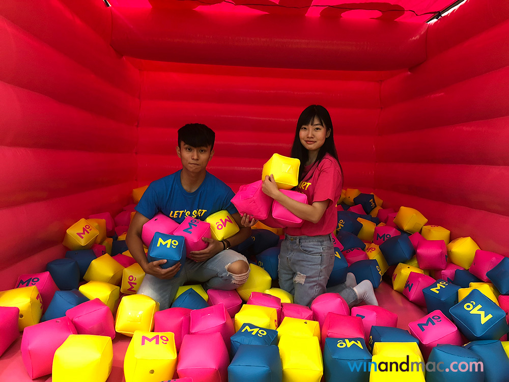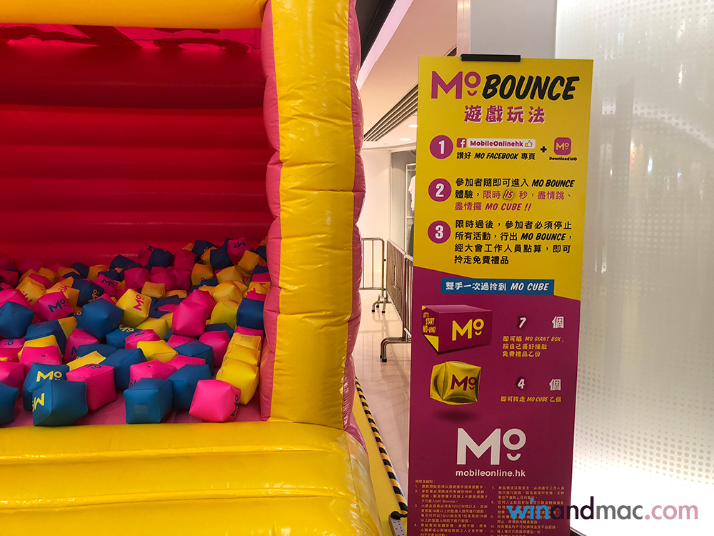 例如在現場就有這個MO BOUNCE遊戲,參加者按指示進入充氣大盒子中,於指定時間內搶當中的MO CUBE,搶到指定數量後,就可以在現場揀選有禮物的MO GIANT BOX。