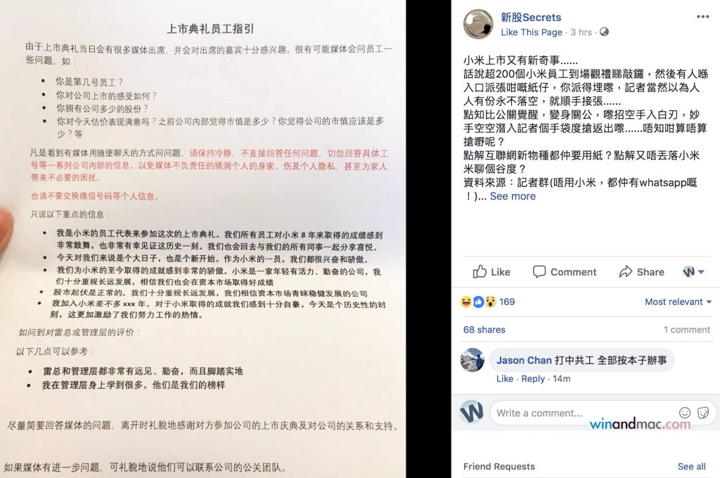 愛國愛黨、但又同股不同權的小米今日正式在香港上市,今朝除了一大班記者出席外,也邀請了超過200位員工到場。有趣的是,小米可能怕員工被記者追問,又或答錯問題,預先準備張貓紙俾佢地,希望員工回答標準答案。