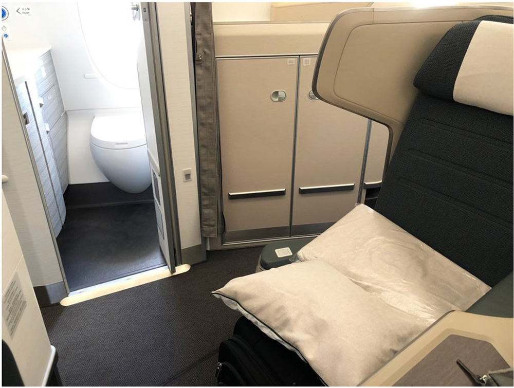 咁若果係商務艙呢,又係咪真係好好多?因航可能諗都諗唔到,本來叫班聽話傳媒幫下手,點知突然殺出一個講老實説話嘅外國傳媒。澳洲最近有人就睇過呢部A350-1000新機,發覺國泰為咗慳位,居然有最少兩個商務位,對正個廁所(上圖)。雖然話可以有塊布係咁二遮住,但大家搭過飛機都知,若果真係多人排嘅時候,你都唔駛諗話有得避。