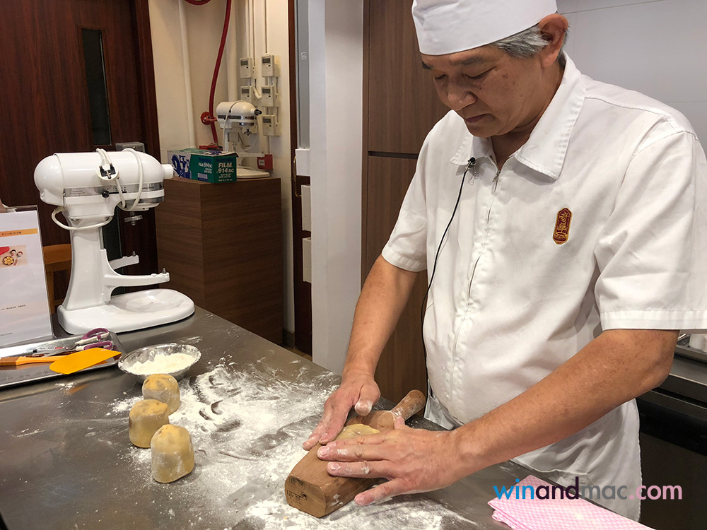 又是一個看似容易,但做起來相當困難的步驟,要包得靚的月餅,要像師傅長年的鍛鍊才有機會做好。做餅一向工時長兼且辛苦,近年來願意入行的年輕人不多,所以Lady M和其他想做自家品牌月餅的,其實都是找香港兩至三間著名的餅店代工。
