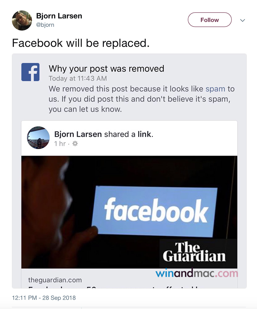 於數小時前,Facebook被爆出系統被入侵,多達5000萬名用家受影響。不少傳媒都有報道事件,但Facebook竟然學足大陸政府,自動河蟹任何相關的新聞,並把其移除,比大陸政府河蟹政治敏感的消息,更快手和更加離譜。